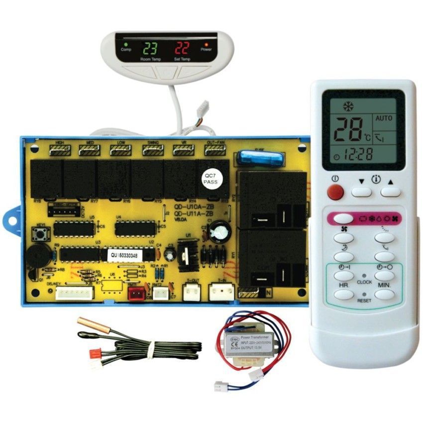 A Placa Universal para Piso Teto Suryha substitui o conjunto original da unidade interna do ar condicionado tipo piso teto em caso de falhas. Conta com controle remoto para ar condicionado, display digital, 5 modos de operação e 3 velocidades de ventilação, mantendo a originalidade do seu equipamento.